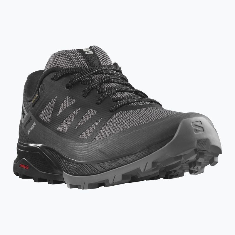 Трекінгові черевики Salomon Outrise GTX - ідеальний вибір для жінок, які шукають ідеальне поєднання стабільності, комфорту та довговічності. Завдяки інноваційним технологіям та матеріалам преміум-класу, черевики будуть ефективно працювати на складній місцевості. Тканинний верх гарантує, що жіночі кросівки Salomon Outrise GTX вентилюються та комфортні, а також забезпечують міцність, необхідну для походів гірськими стежками. Крім того, мембрана GORE-TEX забезпечує водонепроникний захист від елементів на стежці. З турботою про навколишнє середовище виробник використав у Salomon Outrise GTX матеріали, що не містять PFC. Технологія Sensifit та застібка на шнурівці забезпечують щільне прилягання, забезпечуючи стабільність та комфорт на трасі. Проміжна підошва Fuze Surge поєднує м'яку піну EVA з меншою кількістю штучних полімерів, що робить її виробництво більш екологічним. Крім того, вона забезпечує плавну та динамічну ходу, дозволяючи комфортно пересуватися по пересіченій місцевості.