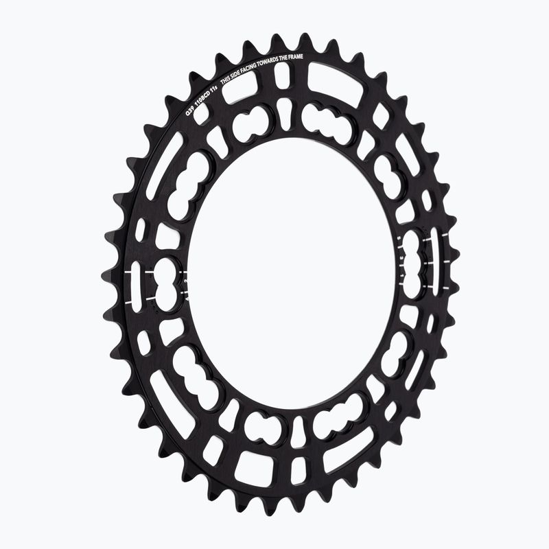 Технологія оптимального розташування дисків Rotor. Представляє різні позиції налаштування, які пропонуються кільцями ROTOR Q, щоб відповідати індивідуальному стилю педалювання велосипедиста та оптимізувати їх.