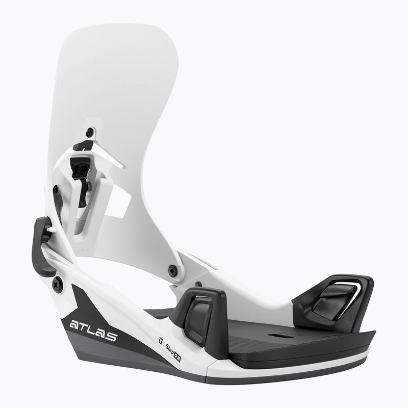 Використана в моделі Atlas Step On технологія Step On® Instant Connection™ дозволяє швидко та інтуїтивно закріпити та відстебнути черевик без використання традиційних ремінців. Механізм Step On® Channel та Step On® 4x2 дає змогу універсально налаштувати кріплення під більшість сноубордичних дошок, а пряжки Step On® забезпечують миттєву передачу енергії на дошку. Такі рішення забезпечують винятковий контроль під час їзди та полегшують експлуатацію навіть у складних умовах.