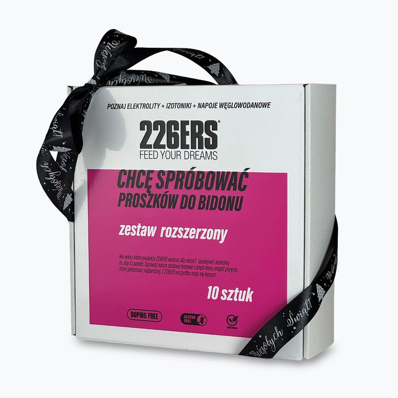 Розширений набір 226ERS — це 10 одноразових порошків для пляшки, які дозволяють свідомо підібрати гідратацію відповідно до навантаження. Ви дізнаєтеся про дію різних типів напоїв, покращите витривалість і комфорт тренування, а також спробуєте всі доступні смаки, щоб обрати улюблений.