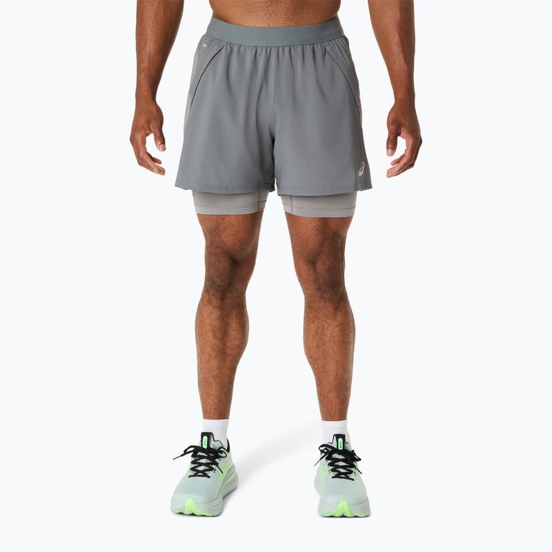 Шорти для бігу чоловічі ASICS Road 2N1 5IN clay grey/steel grey/illuminate green