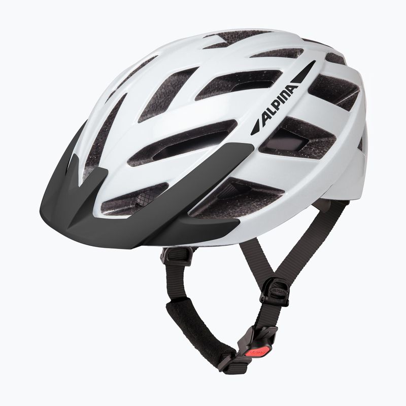 Ергономічна технологія, що використовується в шоломах Alpina, - це перевірена система застібки з червоною кнопкою та автоматичним механізмом блокування. Завдяки тому, що ремінь можна легко відрегулювати однією рукою, його можна легко відрегулювати відповідно до Ваших потреб під час їзди, а механізм блокування не відкриється автоматично в разі падіння.