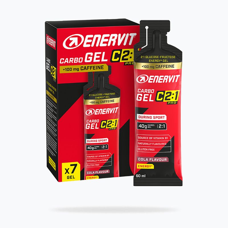 Набір енергетичних гелів Enervit Carbo Gel C2: 1Pro 7 pcs x 60 ml cola with caffeine